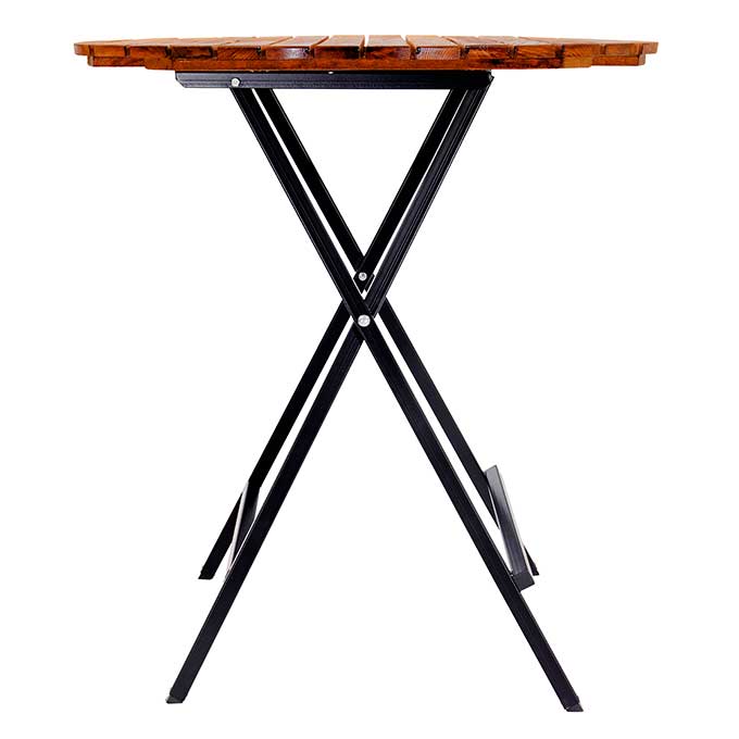 Die klappbaren Stehtische aus Robinie und pulverbeschichtetem Stahl sind sehr langlebig. Die Tischplatte besteht aus einem System von Latten mit einer Konterlattung. Der Abstand der Tischleisten ist mit 4 mm absichtlich gering gehalten. Bei diesem geringen Abstand kann kein Besteck durchfallen. Bei so manchen Hersteller können da sogar Mobiltelefone durchfallen.