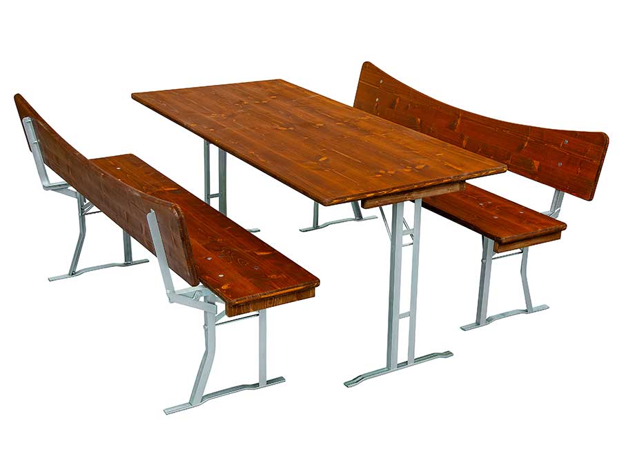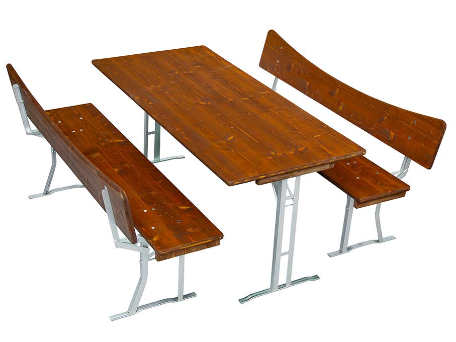 - durch das spezielle Tischgestell hat die Bierzeltgarnitur eine unerreicht große Beinfreiheit rundherum
