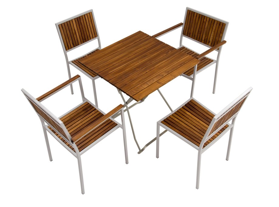 Stapelstühle mit und ohne Armlehne in Kombination mit Biergartentisch (Modell Nr. 01rg)
