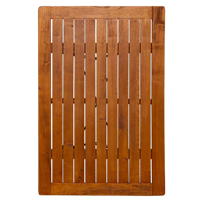 Die Terrassenstühle sind mit sechs Sitz- und vier Rückenleisten ausgestattet. Es gibt eine nach oben gerichtete Wölbung der oberen Leiste in der Lehne. Sämtliche Leisten sind mittels durchgehender Schrauben und Sicherungsmuttern fixiert. Die Schrauben verfügen über eine Verzinkung und weisen zudem eine schwarze Pulverbeschichtung der Schraubenköpfe im Bereich der Sitzfläche sowie der Rückenlehne auf.
