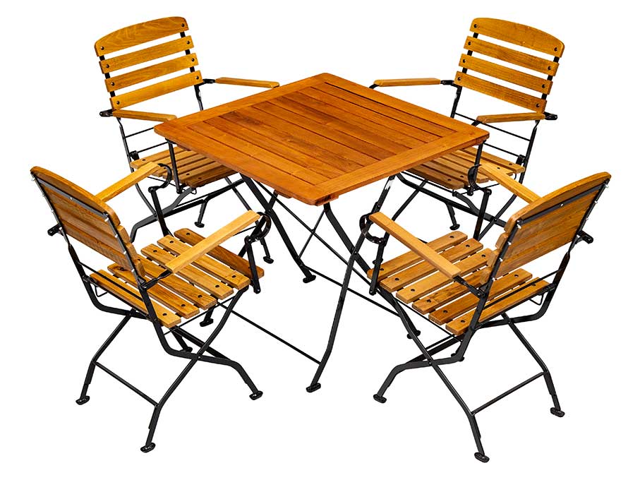 Diese Terrassenmöbel mit Armlehne können Sie im Set online kaufen. Alternativ können Sie gerne persönlich zu uns kommen, um die Möbel anzuschauen, auszuprobieren und verschiedene Modelle zu vergleichen, bevor Sie eine Entscheidung treffen. So können Sie sicher sein, dass Sie die richtige Wahl treffen. Da die Möbel vorrätig sind, haben Sie die Möglichkeit, sie sofort mitzunehmen. Alle Terrassenmöbel und Biergartenmöbel sind bei uns in großer Menge ab Lager verfügbar. Kunden wählen häufig völlig andere Modelle aus, als sie sich zuvor online ausgesucht haben.