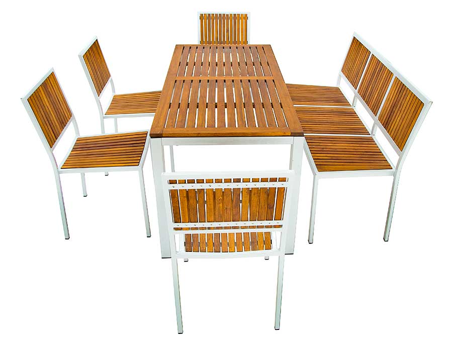 Terrassenmöbel mit stapelbaren Stühlen und Bank (Modell Nr. 11-13-14tm)